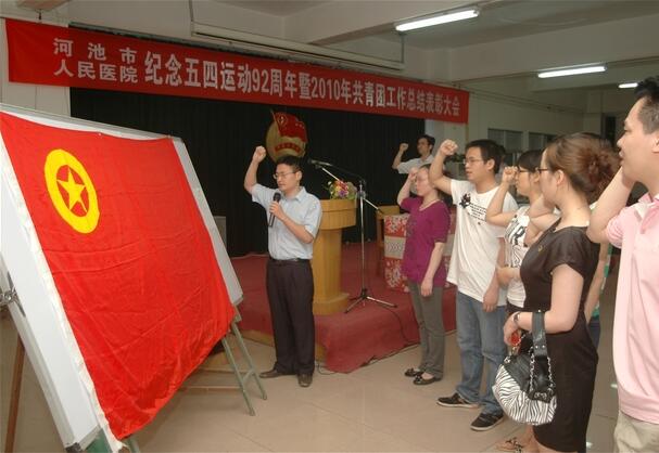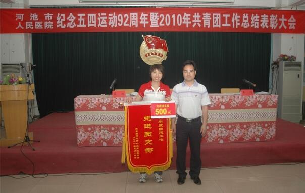 会议由院团委书记韦师主持,并作了题为《创先争优展风采 青春建功促发展》的年度工作报告。他说,2010年,在院党委和团市委的正确领导下,院团委以“三个代表”重要思想为指导,认真学习实践科学发展观,坚持党建带团建的工作思路,立足于“服务大局、服务青年、服务社会”的宗旨,紧紧围绕医院中心工作,大胆探索团员青年工作的新路子,切实推进青年职业道德建设,扎实开展“青年文明号”争创工作,深化青年志愿者服务活动,有效地开展了团的各项工作。由于工作成绩显著,在2011年3月中旬召开的共青团河池市二届四次全委(扩大)会上,我院再次以骄人的成绩荣获年度“河池共青团工作先进单位”和“河池万名青少年造林绿化行动先进集体”。这是我院团委从2006年以来连续五年赢得了年度市级共青团工作先进单位以及省市级多项荣誉。同时,他号召全院广大团员青年要紧密联系医院工作实际,把实现自身价值与服务大局、服务社会相结合,把个人成长成才与医院的发展、科室的建设相结合,积极投身实践活动,认真学习,开拓创新,锐意进取,扎实工作,切实发挥青年的主观能动性和后备军、生力军作用,以实际行动发扬“爱国、进步、民主、科学”的“五四”精神,为实现医院“十二五”规划首年任务目标奉献我们的青春和力量。