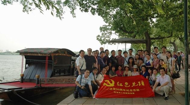 为迎接建党90周年,院党委于5月17日至22日组织党委委员、支部委员赴上海中共一大会址、浙江嘉兴南湖重温了中国共产党诞生的历史过程以及党波澜壮阔、光辉伟大的革命历史。医院党委书记、副院长陆艳姣、党委副书记、院长郑军、党委副书记、纪委书记、副院长谭俊扬以及党委委员、支部委员共34人参加了本次活动。