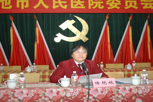 党委书记陆艳姣同志代表医院党委向大会作了《加强党的建设 坚持科学发展 努力开创医院改革与发展的新局面》的工作报告。她全面地总结了十五年来医院工作取得的成绩和基本经验;实事求是地分析了医院当前面临的机遇与挑战,明确了今后一段时期的主要工作目标和工作重点;强调了加强和改进党的建设与思想政治工作的任务与要求。报告指出,未来五年党委工作的总体发展目标和工作任务是:用“三个代表”重要思想和科学发展观统领医院发展全局,紧紧围绕医院建立桂西北医疗中心的总要求,充分发挥党组织的战斗堡垒作用和党员的先锋模范作用,组织和带领广大党员、干部职工,以改革为动力,以发展为主线,促进全院各项工作实现跨越式发展,为建立桂西北医疗中心而努力奋斗。