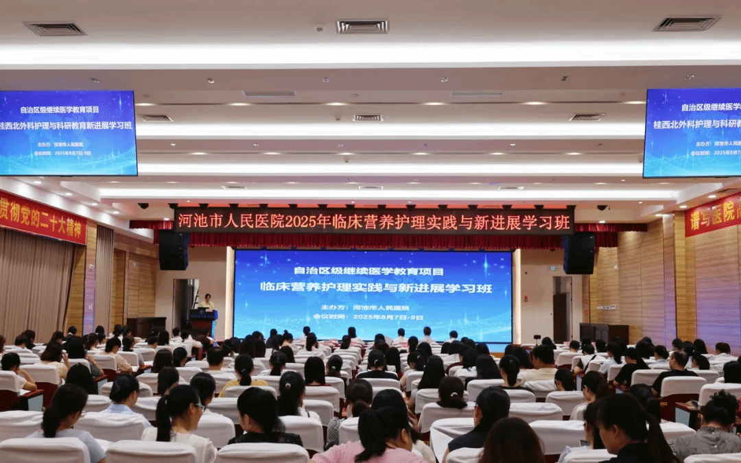 8月7日至8日,广西医科大学第一附属医院河池医院・河池市人民医院圆满举办了自治区级临床营养护理实践与新进展学习班。这是广西壮族自治区内首次由护理学专业领域牵头举办的高规格临床营养护理专题培训,吸引了全区各级医疗机构300余名护理骨干、营养专科护士及相关管理人员参与,为全区临床营养护理领域的进步注入了新动能。