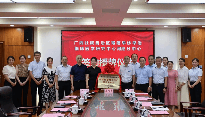 近日,广西胃癌早诊早治临床医学研究中心河池分中心在广西医科大学第一附属医院河池医院·河池市人民医院揭牌成立。作为桂西北地区首个消化道肿瘤早筛早诊中心,该中心的成立标志着区域消化道肿瘤防治迈入“早筛早诊早治”新阶段,为区域百姓健康提供更强有力的保障。